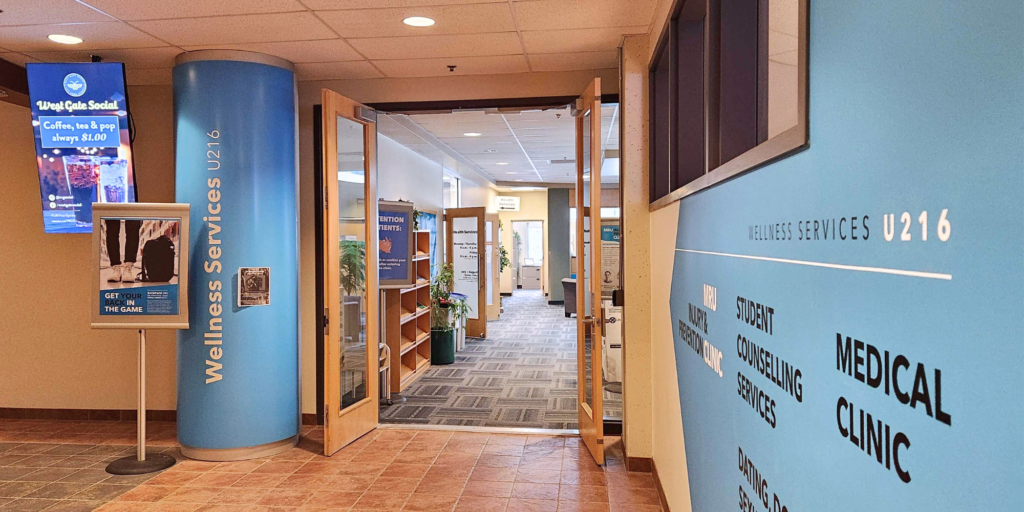 MRU Wellness Services is located in Room U216 (on the way to Recreation) and provides various services and resources. If you are seeking sexual health education and/or STI testing, the services at the Health Services Medical Clinic are available to these MRU community members: