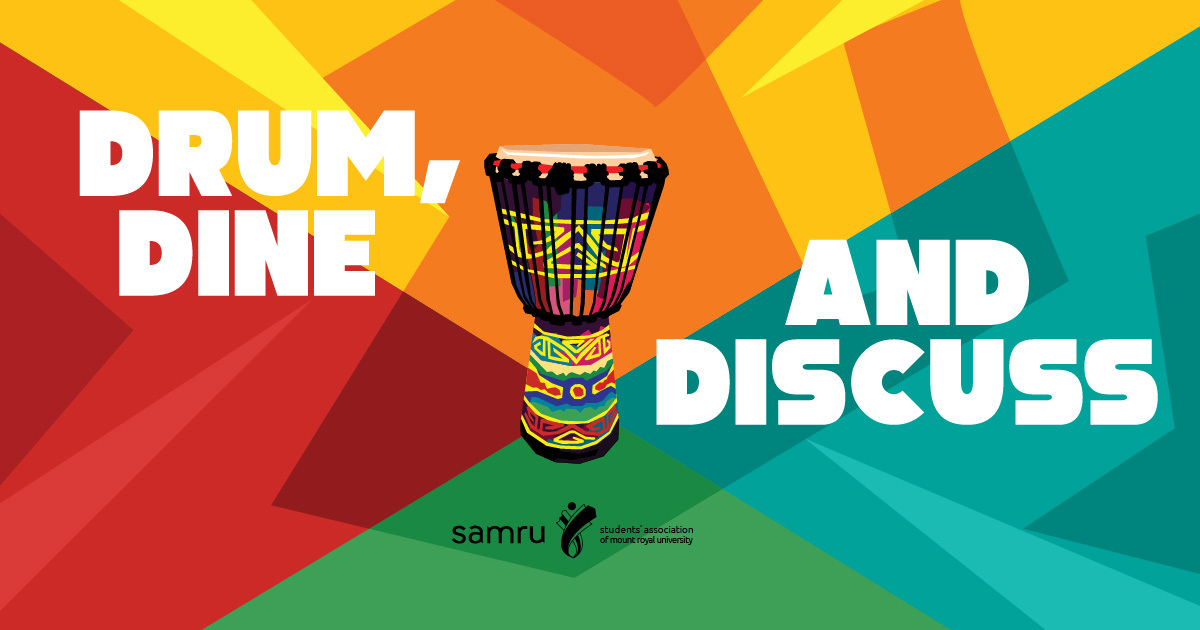 Drum, Dine, and Discuss happens on Thursdays from 4:30 pm – 6:30 pm and is open to everyone on campus. Drumming is a great way to reduce stress through making music! Beginners and participants of all experience levels are welcome to join. After the Drum Circle, enjoy snacks and networking. Meet us in the Cultural Inclusion Centre (Room Z203) – let’s drum!