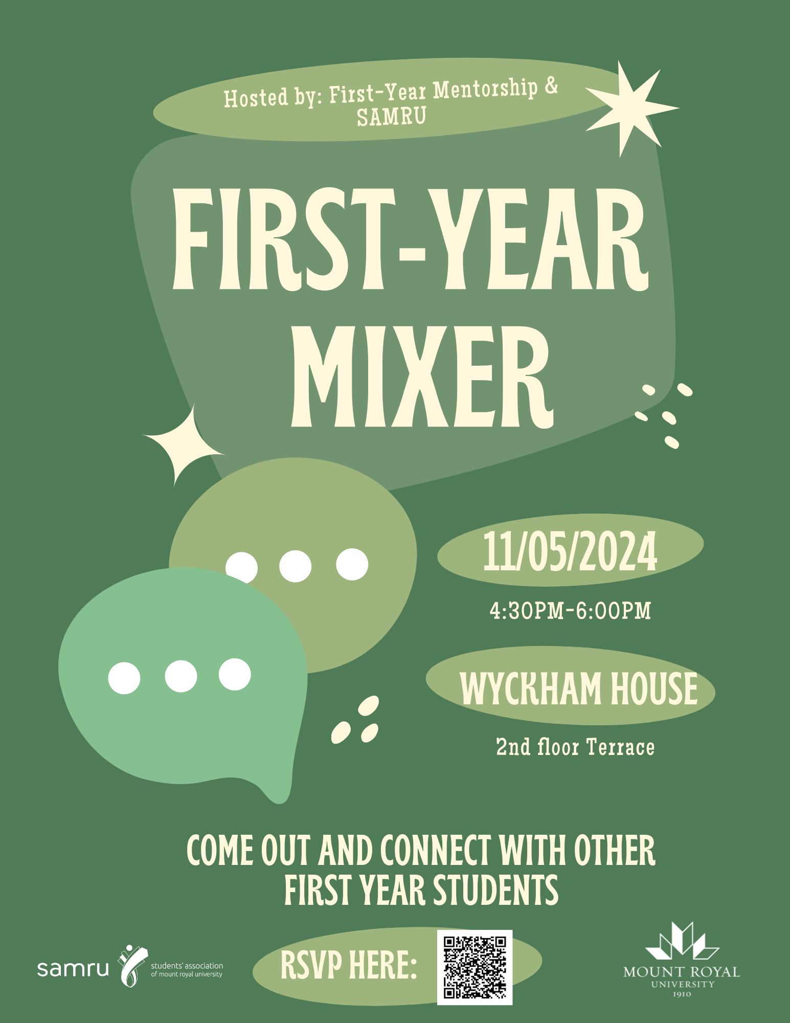 Join us for the First-Year Student Mixer in collaboration with MRU Student Experience and SAMRU in Wyckham House Second Floor! We’ll have food, drinks, and fun activities for everyone! It’s the perfect chance for first-year students to connect, network, and start building lasting friendships. Don’t miss out, and come and be part of this exciting event!