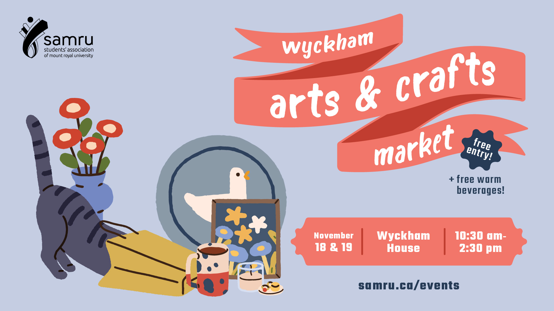 The Wyckham Arts and Crafts Market is right around the corner on November 18th and 19th! So whether you’re trying to find a handmade item or looking to showcase your side hustle, come enjoy free warm beverages sponsored by Urban Calm Coffee Company and support students’ small businesses at the Wyckham Arts & Crafts Market.