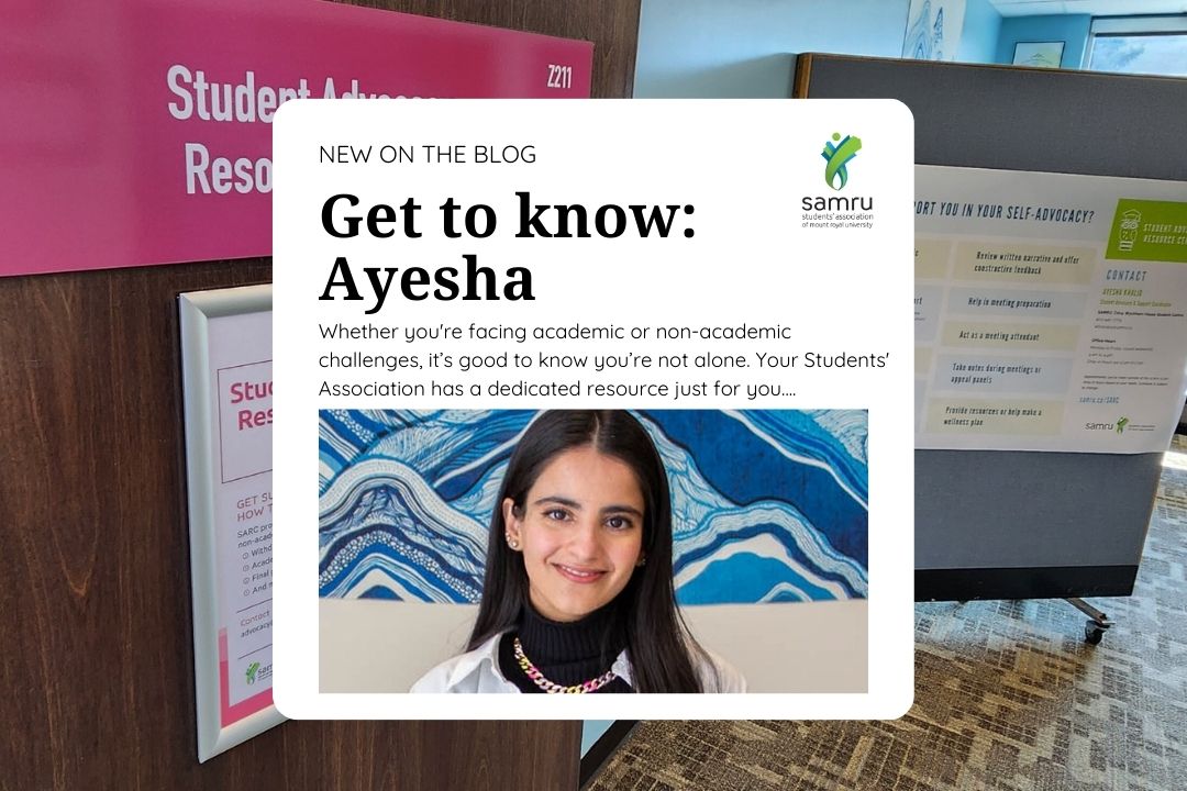 Keep reading to learn more about Ayesha’s role at the Students’ Association and how SARC provides essential support and guidance for students facing academic or personal challenges.