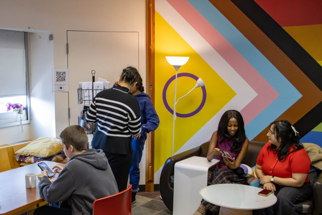The Pride Centre is a hub for students of all genders and sexualities. Pride Centres are important for students to share their own experiences in coming out, learning more about queer and trans resources in Calgary, and forming connections with fellow 2SLGBTQIA+ students and allies.